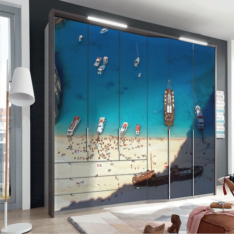 Αυτοκόλλητο ντουλάπας με ένα από τα πιο ενδιαφέροντα αξιοθέατα της Ζακύνθου, το Ναυάγιο, σε λήψη από ψηλά. Μία ιδιαίτερη πρόταση που θα δημιουργήσει μία χαρούμενη ατμόσφαιρα στο χώρο σας.