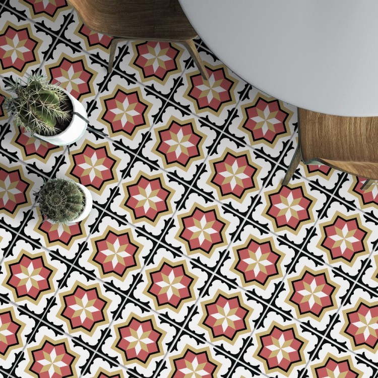 Το Floral Μοτίβο είναι μια τάση που έχει έρθει για να μείνει! Τοποθετήστε αυτοκόλλητα πλακάκια δαπέδου, Floral Μοτίβο ανοιχτό κόκκινο & χρυσό (8 τεμάχια) στο χώρο σας! Υπέροχα σχήματα που μπορούν να κάνουν το χώρο σας μοντέρνο και διαχρονικό!