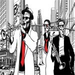 Το πιο φαντασμαγορικό σχέδιο σε ένα αυτοκόλλητο ψυγείου με τον τίτλο ‘Τζαζ μπάντα’. Κάντε την κουζίνα σας εξαιρετικά όμορφη με χρωματιστές κόμικ εικόνες!