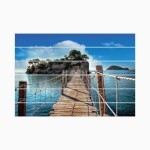 Βάλτε τη καλοκαιρινή διάθεση στο χώρο σας με τα αυτοκόλλητα που απεικονίζουν μια ξύλινη γέφυρα στη θάλασσα που καταλήγει σε ένα βραχώδες νησί.
