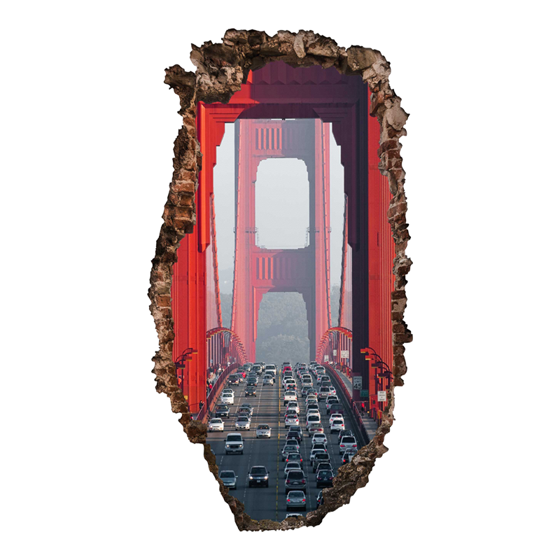 Υπέροχο 3D-Τρισδιάστατο αυτοκόλλητο με θέα σε ‘Γέφυρα της Αμερικής’. Ένα σχέδιο που θα σας ομορφύνει το σαλόνι!
