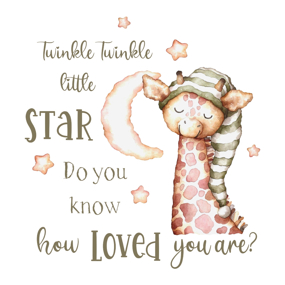 Ανανεώστε την αισθητική του βρεφικού δωματίου, χωρίς να το βάψετε, και δώστε του την ήρεμη ενέργεια που χρειάζεται, με το παιδικό αυτοκόλλητο τοίχου “Twinkle Little Star”. Το όμορφο αυτό αυτοκόλλητο με τη χαριτωμένη και κοιμισμένη καμηλοπάρδαλη θα δώσει μια πιο όμορφη και γλυκιά οπτική στη διακόσμηση του δωματίου και θα το μετατρέψει στον ιδανικό χώρο για να μπορεί να χαλαρώνει το μωράκι σας! Αποτελεί, επίσης, μια ιδανική επιλογή διακόσμησης βρεφονηπιακών σταθμών, παιδότοπων και άλλων σχολικών χώρων.