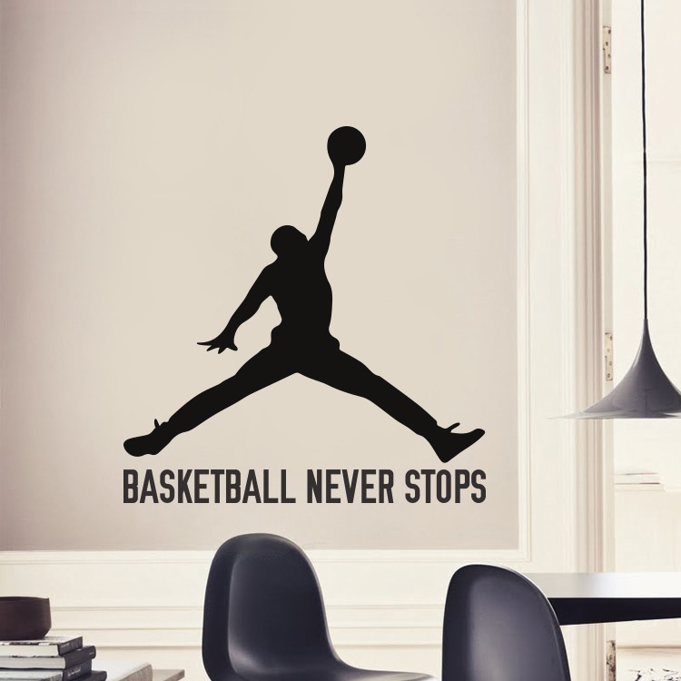 Κερδίστε την έμπνευση που χρειάζεστε για να συνεχίσετε την σκληρή προπόνηση. Το αυτοκόλλητο τοίχου Basketball never stop είναι ιδανικό για τον χώρο σας και μπορείτε εσείς να επιλέξετε το χρώμα που σας αντιπροσωπεύει περισσότερο.