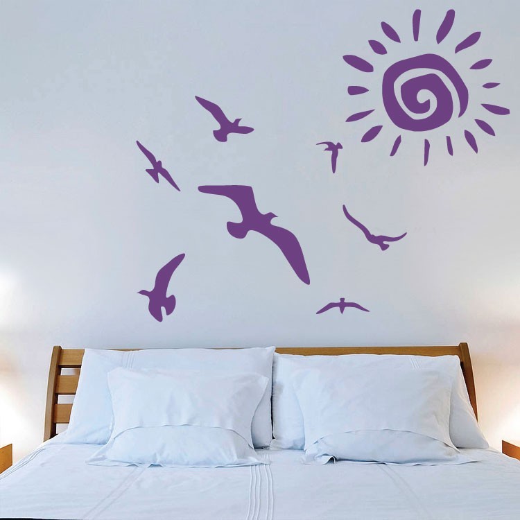 Πολύχρωμο αυτοκόλλητο τοίχου ‘Ήλιος και πουλιά’ που θα γεμίσει το υπνοδωμάτιο ή το σαλόνι σας με όμορφα χρώματα. Για ένα πιο όμορφο και έξυπνο ντεκόρ!