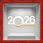 Ετοιμαστείτε να υποδεχτείτε τα Χριστούγεννα και τη νέα χρονιά με τον πιο όμορφο εορταστικό στολισμό, με το αυτοκόλλητο βιτρίνας "2026 Κύκλος Άσπρο & Χρυσό"!