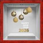 Φέρτε το πνεύμα των Χριστουγέννων στο κατάστημά σας με τον πιο όμορφο εορταστικό στολισμό, με το μοντέρνο αυτοκόλλητο βιτρίνας "Golden Ornaments gold 2026"!