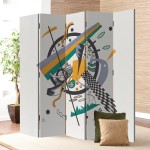 Το παραβάν Small worlds III στο οποίο απεικονίζεται ένα αντίγραφο του έργου τέχνης του Wassily Kandinsky, ήρθε για να το τοποθετήσετε στο σπίτι σας και να εκπλήξετε τους καλεσμένους σας με τις επιλογές σας!