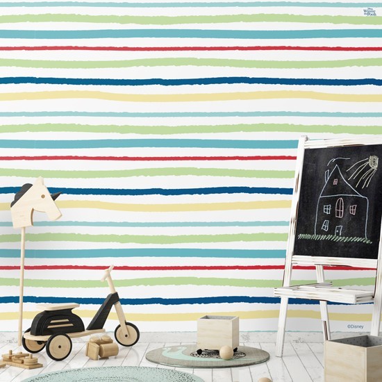 Δώστε μια πρωτότυπη και δημιουργική ατμόσφαιρα στο παιδικό δωμάτιο με την ταπετσαρία τοίχου Πολύχρωμες ρίγες του Winnie The Pooh! Οι μικροί μας φίλοι θα λατρέψουν το αποτέλεσμα.