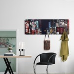 Μια εκπληκτική εικόνα μιας ασιατικής πόλης τη νύχτα με τα πολύχρωμα και φωτεινά κτίρια, σε κρεμάστρα τοίχου.