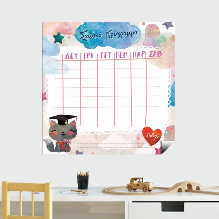Χρησιμοποιείστε το αυτοκόλλητο τοίχου Mini Pack Σχολικό Πρόγραμμα "Γατούλα" και βάλτε πρόγραμμα στα μικρά σας κάνοντάς το παιχνίδι με τη βοήθεια μιας χαριτωμένης γατούλας!