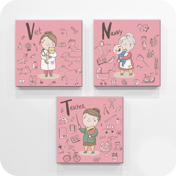 Με το Mini Set καμβάς Επαγγέλματα ροζ φόντο η μέρα θα γίνει πιο διασκεδαστική. Διακοσμήστε το παιδικό δωμάτιο με αυτό και δείτε το παιδί να ενθουσιάζεται.