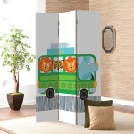 Επιβιβαστείτε στο πράσινο Λεωφορείο με ζώα και θα φτάσετε στον επόμενο διασκεδαστικό προορισμό σας. Το παραβάν θα δώσει περιπετειώδη χαρακτήρα στο παιδικό δωμάτιο και κανένας μικρός εξερευνητής δεν θα θέλει να το αποχωριστεί.