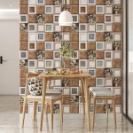 Μοτίβο με ανάγλυφα τετράγωνα με λουλούδια σε καφέ, μπεζ και άσπρες αποχρώσεις.