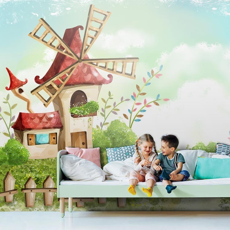 Η ταπετσαρία τοίχου Σκηνικό με μύλο είναι μια όμορφη και ζωντανή παράσταση που θα γεμίσει το δωμάτιο του παιδιού σας με χαρούμενα χρώματα. Κολλήστε την στον τοίχο και δείτε το χώρο σας να αλλάζει με ένα παραμυθένιο τοπίο.