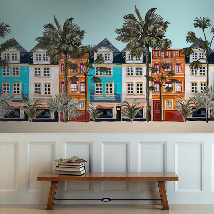 Κάντε ένα διάλειμμα από την αγχώδη καθημερινότητα με τα χρώματα που προσφέρει η ταπετσαρία τοίχου Φοίνικες στη πόλη της Γένοβας και ταξιδέψτε μαζί της. Διακοσμήστε τον χώρο σας με ένα ξεχωριστό τοπίο και απολαύστε τον προσωπικό σας χρόνο.